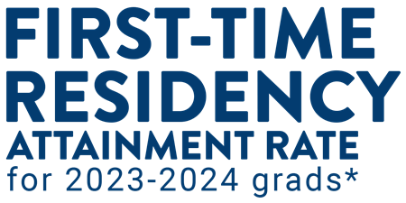 *First-time residency attainment rate is the percent of students attaining a 2023-24 residency position out of all graduates or expected graduates in 2022-23 who were active applicants in the 2023 NRMP match or who attained a residency position outside the NRMP match.